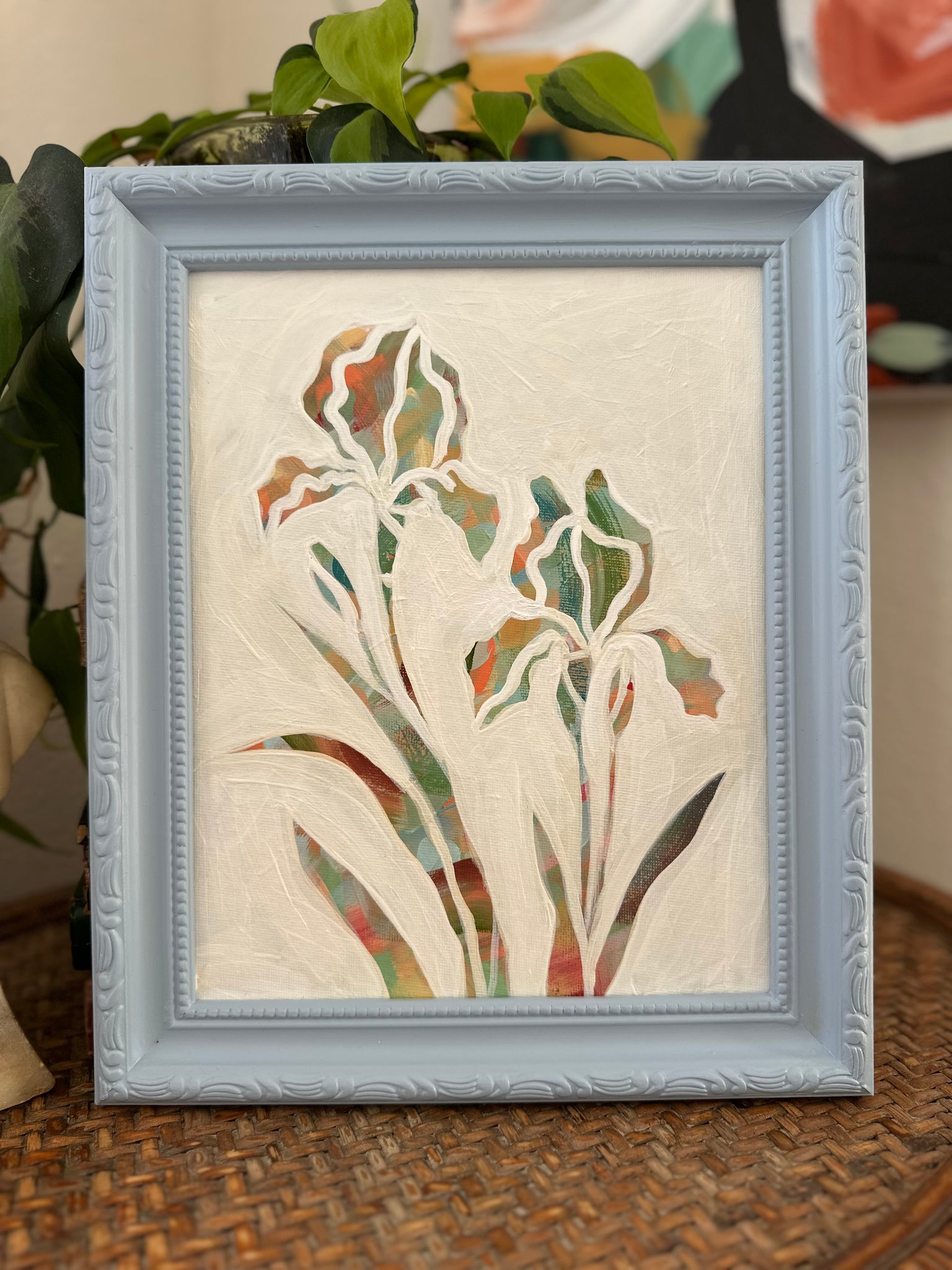 original acrylic painting on thrifted frame and canvas panel.